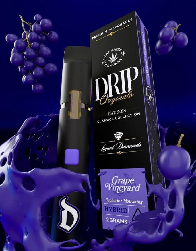 Simply open the package, and you’re good to go. Its sleek, portable design fits easily into your pocket or bag, making it perfect for on-the-go vaping anytime, anywhere. Enjoy the delicious, uplifting flavor of fresh grapes wherever life takes you with the Drip Grape Vineyard Disposable.